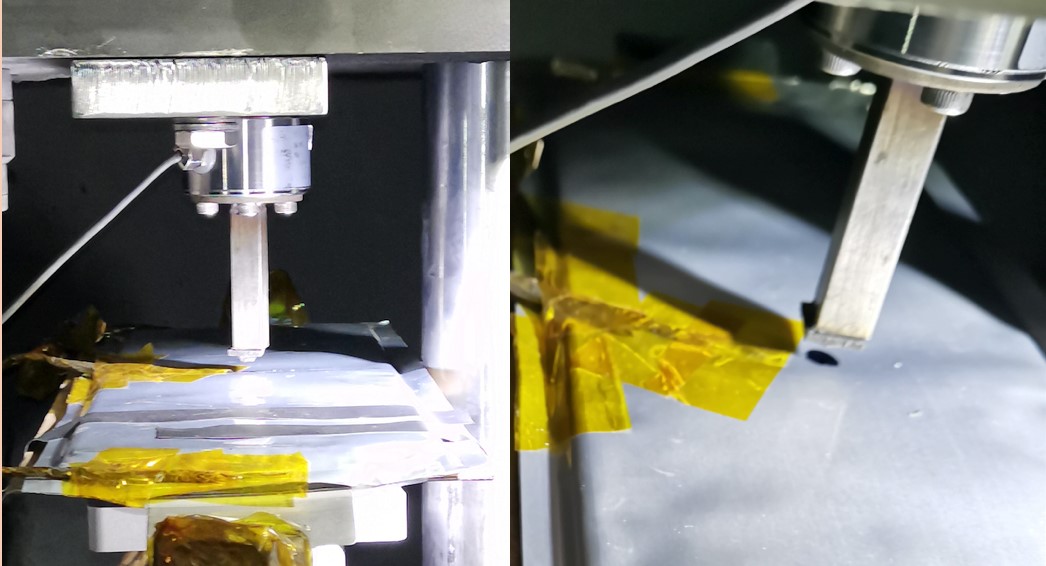 近日,國聯(lián)研究院檢測試驗中心在電池強制內(nèi)短路測試能力方面取得新突破,嚴格參照國際電工委員會標準IEC62133《便攜式電子產(chǎn)品用含堿性或非酸性電解液的單體蓄電池和電池組的安全要求》,成功實現(xiàn)測試電池高質(zhì)量植入制樣及精確定位擠壓強制內(nèi)短路測試,客戶對于制樣效果和擠壓測試結(jié)果均非常滿意,奠定了長期合作的基礎。