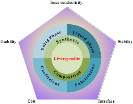 硫銀鍺礦型固態(tài)電解質評價指標與研發(fā)方向示意圖