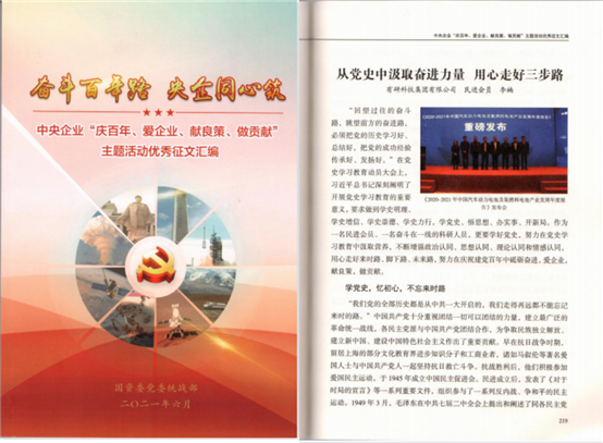 習近平總書記曾指出:“我們回顧歷史,不是為了從成功中尋求慰藉,更不是為了躺在功勞簿上、為回避今天面臨的困難和問題尋找借口,而是為了總結歷史經(jīng)驗、把握歷史規(guī)律,增強開拓前進的勇氣和力量?!奔訌婞h史學習,就是要善于總結歷史規(guī)律,從中提煉發(fā)現(xiàn)和解決問題的本領能力,就是要從中感悟一脈相承的責任擔當與實干精神,自覺踐行到工作中,做到永不言棄,越是艱難越向前。近年來,作為首家國家級制造業(yè)創(chuàng)新中心,在有研集團黨委的領導下,國家動力電池創(chuàng)新中心依托國聯(lián)研究院掛牌成立,著力解決行業(yè)共性問題和難點問題。來到國聯(lián)研究院后,我見證了鋰電350項目,歷經(jīng)5年技術攻關后,成功研發(fā)出單體能量密度350Wh/kg的電池技術原型,并在中國汽車動力電池產(chǎn)業(yè)創(chuàng)新聯(lián)盟2021年度會議上完成項目成果正式交付;我見證了市場拓展突擊隊、超乎檢測突擊隊,富鋰材料攻關突擊隊等國聯(lián)研究院六大黨員突擊隊,夜以繼日、攻堅克難,著力突破動力電池技術,聚力推動國家車用動力電池產(chǎn)品質量監(jiān)督檢測中心成立,支撐我國新能源汽車產(chǎn)業(yè)可持續(xù)發(fā)展,今年的中央企業(yè)五四表彰就是黨對“突擊隊”工作的最好肯定;更是見證了自己在動力電池檢測工作崗位上,積極發(fā)揮民主黨派、民進會員作用,不斷總結經(jīng)驗,不斷分析檢測市場新形勢、把握發(fā)展新規(guī)律,立足崗位干實事、出實招。我曾擔任部門170Wh/kg輕量化電池系統(tǒng)預研項目的項目助理,參與了動力電池系統(tǒng)中試線項目、模組中試線、260電芯電池系統(tǒng)開發(fā)項目等一系列項目,努力為項目攻關出謀劃策,先后發(fā)表專利三篇,作為合編作者出版著作一本(CIP數(shù)據(jù)),公開發(fā)表文章一篇(SCI)。這些見證有感同身受,也有切身參與。但每次都是在開拓進取,扎實走好腳下路,都是在用“匠心”助力企業(yè)創(chuàng)新創(chuàng)業(yè),駐足科技長遠發(fā)展,都是在不斷提高建言資政的能力,多見良言,多獻良策。