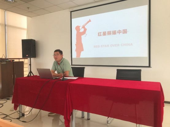 柏祥濤分享了美國作者埃德加·斯諾所著的《紅星照耀中國》一書?;顒赢?dāng)天正是毛主席逝世46周年紀(jì)念日,今天分享的這本書籍還原原著中的諸多細(xì)節(jié),有血有肉地塑造與再現(xiàn)了毛澤東、周恩來、彭德懷等革命領(lǐng)袖的寫實(shí)形象,客觀公正地了解這支成功建立共和國的革命隊(duì)伍,詩意詮釋“不忘初心”的真諦,給了在場很多同事啟發(fā)。