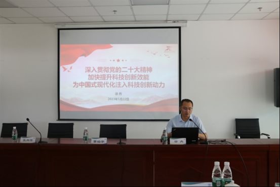 國聯(lián)研究院黨委書記、總經(jīng)理徐冉代表公司黨委匯報了國聯(lián)研究院主題教育進(jìn)展情況,并講授專題黨課,題目是《深入貫徹黨的二十大精神,加快提升科技創(chuàng)新效能,為中國式現(xiàn)代化注入科技創(chuàng)新動力》。
